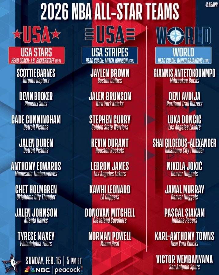 全明星赛分组:詹杜库成队 字母约基奇东契奇文班汇集